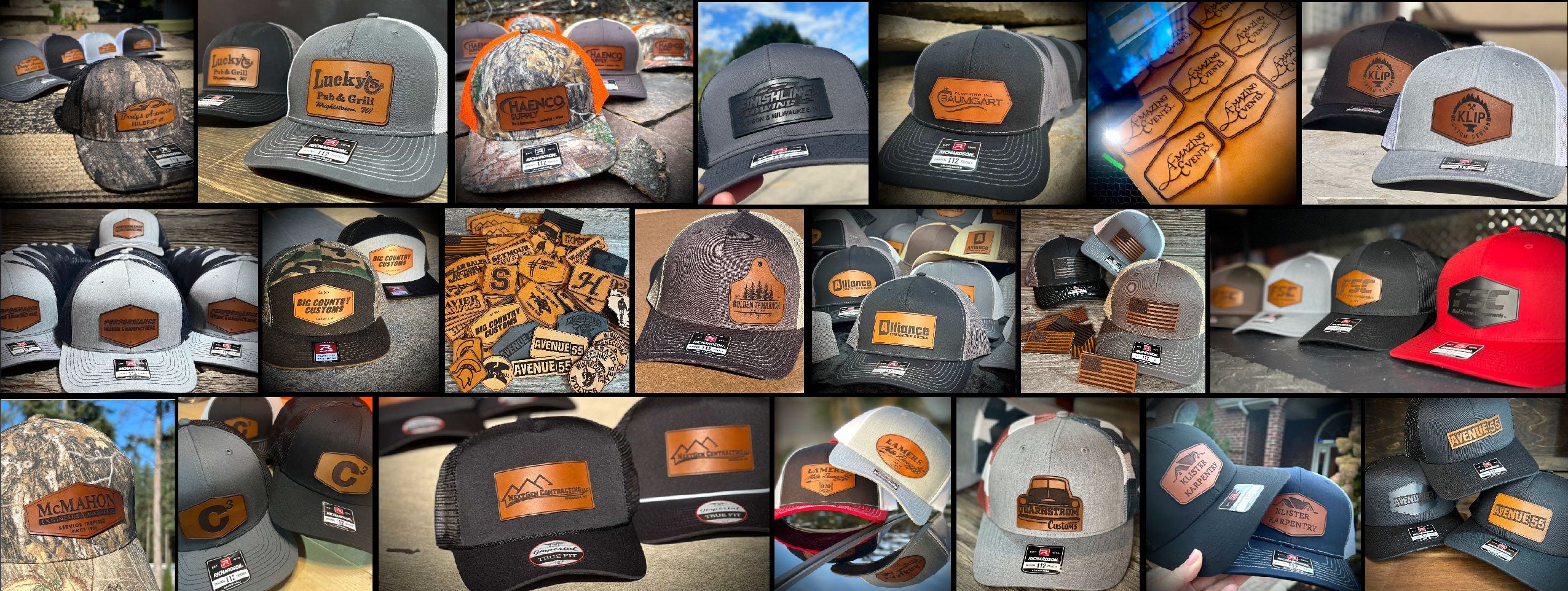 Pricing for Richardson 112 or 111 snapback trucker hats with genuine leather, lasered, sealed and pressed onto the hat. No set-up fees.